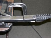 cramped position and one that tends to cause the body to slide forward on the seat causing an uncomfortable wedgie feeling. The other option is to add a set of highway pegs. You can purchase a nice setup from Happy Trails for about $100, various shady setups for about $50, or you can build your own, in less than two hours, for under $12. (Not counting the time it takes the paint to dry.) All the materials used here,
